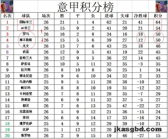 积分榜方面,AC米兰主场爆冷被帕尔马绝杀后,近2轮只拿到1分,国米那边一波7连胜,本轮过后国米对AC米兰的领先优势确定在10分,那不勒斯,尤文同样是无力追赶,恐怕本赛季意甲的冠军争夺是要没有悬念了。罗马今天大胜后,凭借净胜球优势超过那不勒斯升到第3位。