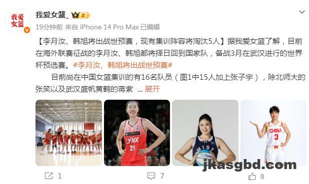 至于中国女篮接下来的16人集训名单,除北师大的张笑与武汉女篮的蒋紫涵外,其余13名球员依旧,并且会加上李月汝、韩旭,以及即将伤愈的武汉女篮队长王佳琦,她们将组成最后的16人集训名单。