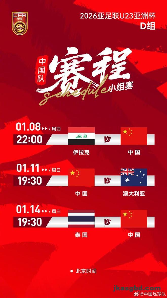 本届赛事,中国队与伊拉克队、澳大利亚队和泰国队同分在D组。北京时间1月8日22时,中国队首场对阵伊拉克队。